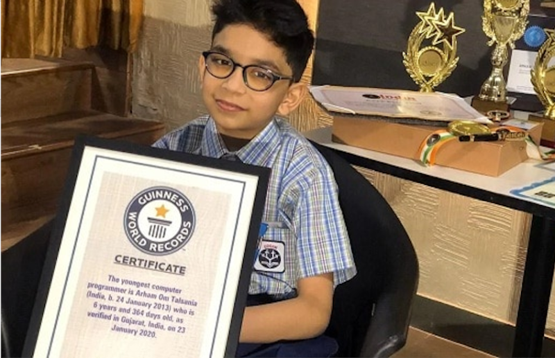 Guinness World Record: गुजरात के 6 साल के एक बच्चे ने अपने काबिलियत से पूरे देश को गर्व महसूस कराया है। अहमदाबाद के एक छह वर्षीय अरहम ओम तल्सानिया ने पायथन प्रोग्रामिंग भाषा को क्लियर करके गिनीज वर्ल्ड रिकॉर्ड में विश्व के सबसे कम उम्र के कंप्यूटर प्रोग्रामर के रूप में अपना नाम दर्ज कराया है। 6 साल की उम्र में पायथन लैंग्वेज मैं प्रोग्राम डेवलपिंग की परीक्षा में 1000 में से 900 मार्क्स लेकर पाकिस्तान मूल के ब्रिटिश नागरिक मोहम्मद हमजा शहज़ाद का रिकॉर्ड तोड़ा है। हमज़ा 7 साल का है जबकि उसने अब तक 757 मार्क्स स्कोर किये थे।