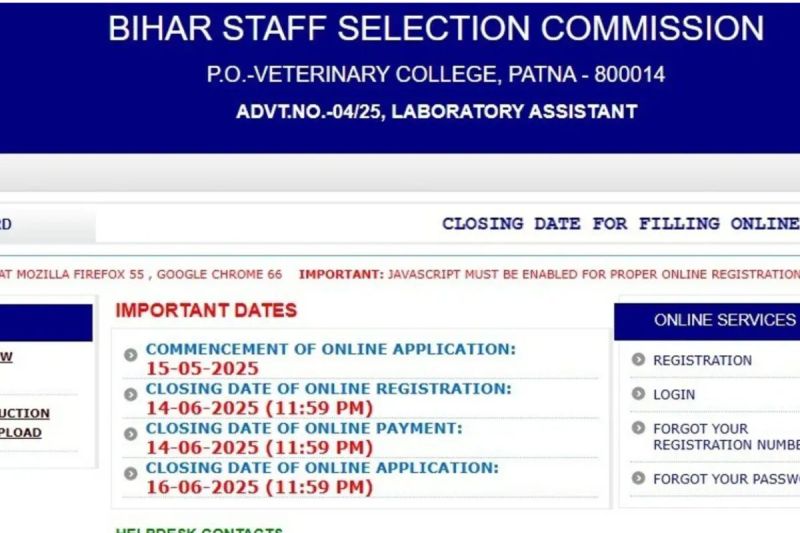 Bihar Lab Assistant Vacancy 2024: बिहार कर्मचारी चयन आयोग (BSSC) ने लैब असिस्टेंट पदों पर बंपर वैकेंसी का नोटिफिकेशन जारी किया था। जो उम्मीदवार बिहार सरकार के अधीन सरकारी नौकरी की तलाश में हैं, उनके लिए यह एक शानदार अवसर है। आवेदन की अंतिम तारीख 16 जून 2025 निर्धारित की गई है। इच्छुक अभ्यर्थी आवेदन की तारीख खत्म होने से पहले आयोग की आधिकारिक वेबसाइट bssc.bihar.gov.in पर जाकर जल्द से जल्द ऑनलाइन आवेदन कर लें।