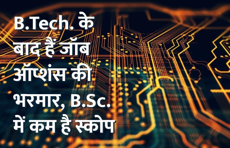 बीएससी करने पर बीटेक के मुकाबले छोटी पोस्ट तक ही जा पाएंगे और एंट्री लेवल पर सालाना पैकेज भी 1.20 लाख से लेकर 2 लाख तक ही मिल सकता हैं। बीटेक पास बीएससी पास के लिए उपलब्ध सभी पोस्ट पर लग सकता हैं, लेकिन बीएससी पास बीटेक के लिए उपलब्ध सभी पोस्ट पर नही लग सकता है। बीटेक स्टूडेंट ज्यादा प्रोडक्टिव होता है।