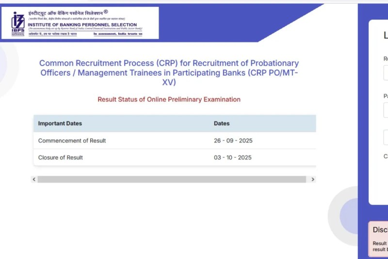IBPS PO Prelims Result 2025 को लेकर जरुरी अपडेट आ गया है। IBPS ने प्रोबेशनरी ऑफिसर (पीओ) प्रीलिम्स परीक्षा 2025 का परिणाम घोषित कर दिया है। जिन उम्मीदवारों ने इस परीक्षा में हिस्सा लिया था, वे अब इंस्टीट्यूट ऑफ बैंकिंग पर्सोनेल सिलेक्शन की आधिकारिक वेबसाइट www.ibps.in पर जाकर अपना रिजल्ट देख सकते हैं। रिजल्ट देखने के लिए उम्मीदवारों को अपने रजिस्ट्रेशन नंबर या रोल नंबर के साथ पासवर्ड और जन्मतिथि जैसी जानकारी की जरुरत होगी।