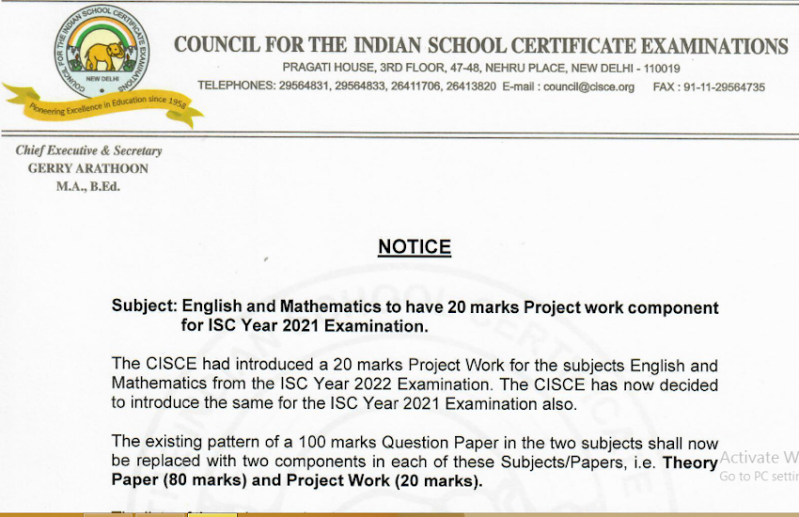 साथ ही ये भी बताया है कि इन दोनों विषयों के लिए सैंपल क्वेश्चन पेपर्स जल्द ही काउंसिल की वेबसाइट पर अपलोड कर दिए जाएंगे। इन प्रोजेक्ट वर्क्स का असेसमेंट व मार्किंग पैटर्न ISC 2022 regulations and syllabus में दिए गए दिशानिर्देश के आधार पर होगा। ये दिशानिर्देश आप बोर्ड की वेबसाइट पर देख सकते हैं।