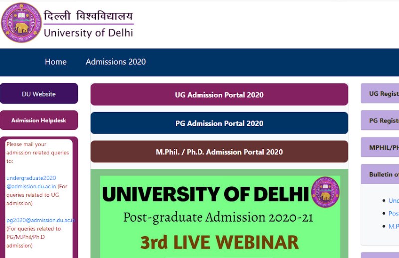 डीयू रजिस्ट्रेशन (DU registration 2020) की प्रक्रिया ऑनलाइन पूरी करनी है। यूनिवर्सिटी की आधिकारिक वेबसाइट du.ac.in पर जाकर अपने पसंदीदा कोर्स के लिए रजिस्टर करना होगा। अब तक विभिन्न कोर्सेस के लिए 4,04,315 रजिस्ट्रेशन हो चुके हैं। यह पिछले साल से ज्यादा है।