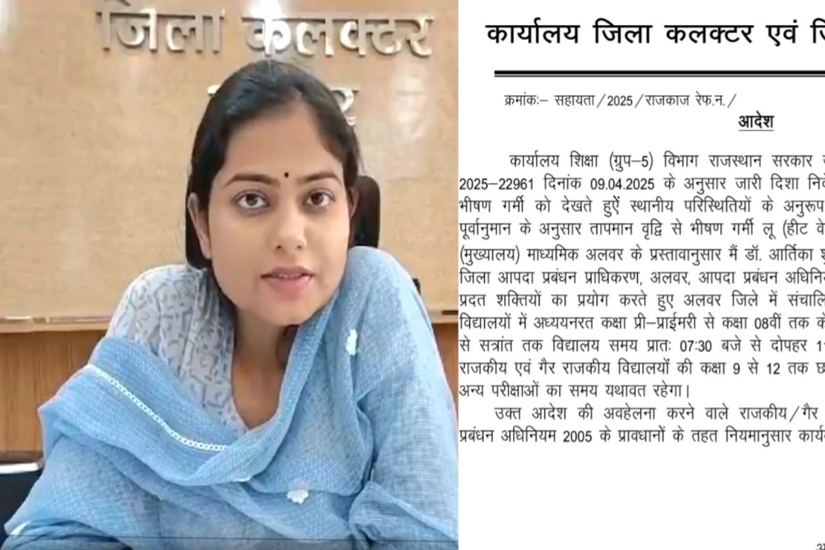 अलवर जिले में लगातार बढ़ रही गर्मी को देखते हुए जिला प्रशासन ने बड़ा फैसला लिया है। जिला कलेक्टर डॉ. आर्तिका शुक्ला ने स्कूलों के समय में परिवर्तन के आदेश जारी किए हैं। यह फैसला विद्यार्थियों की सुरक्षा और स्वास्थ्य को ध्यान में रखते हुए लिया गया है। राजस्थान पत्रिका ने 24 अप्रैल, यानी आज गुरुवार को ही गर्मी के मद्देनजर स्कूलों के समय परिवर्तन की आवश्यकता को लेकर प्रमुखता से खबर प्रकाशित की है।