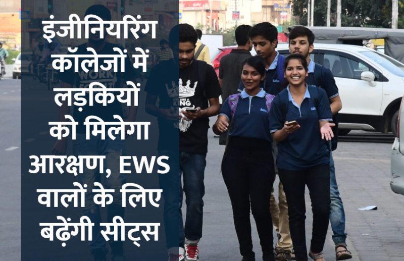 IITs, NITs, IIITs समेत केन्द्रीय इंजीनियरिंग संस्थानों में गर्ल्स का रेशो बढ़ाने के लिए इस बार रिजर्वेशन 17 प्रतिशत होगा। इसके लिए पिछले साल की तरह सुपरन्यूमेरी सीटें रखी जाएंगी। वहीं पहली बार इकोनॉमिकली वीकर सेक्शन (EWS) कैटेगरी के लिए इसी सत्र से ओल्ड एनआइटीज 10 प्रतिशत सीटें बढ़ाएंगी। यानी मौजूदा सीटों के अलावा इस कैटेगरी के लिए सीटों में इजाफा किया जाएगा। नई एनआइटीज अगले सेशन से इसे बढ़ाने की तैयारी कर रही हैं।