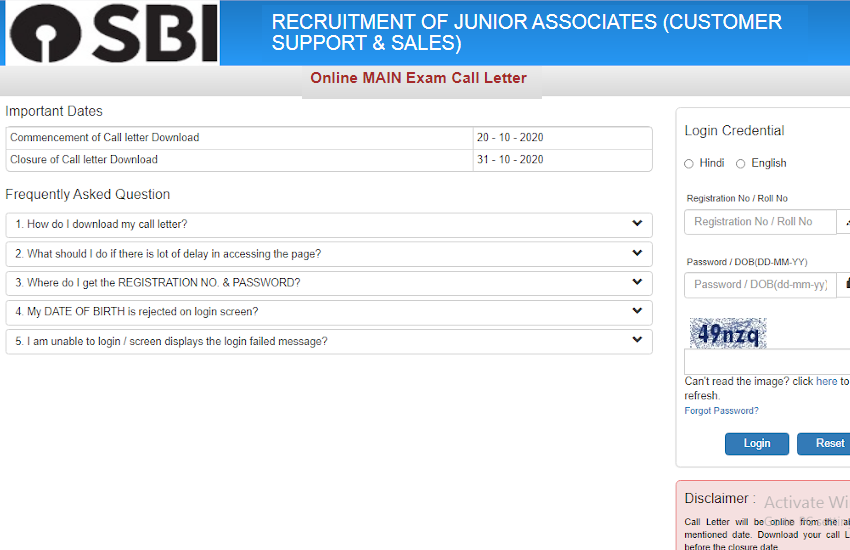 होम पेज पर SBI clerk main admit card 2020 लिंक पर क्लिक करें।