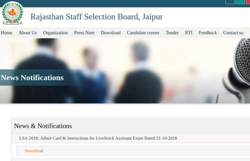 LSA Admit Card 2018 राजस्थान पशुपालन विभाग में पशुधन सहायक के 2077 पदों पर भर्ती के लिए आयोजित होने वाली लिखित परीक्षा के प्रवेश पत्र आधिकारिक वेबसाइट पर अपलोड कर दिए गए हैं। जिन अभ्यर्थियों ने आवेदन किया है वे राजस्थान कर्मचारी चयन बोर्ड RSMSSB की आधिकारिक वेबसाइट rsmssb.rajasthan.gov.in से डाउनलोड कर सकते हैं। पशुधन सहायक के पदों पर भर्ती हेतु लिखित परीक्षा 21 अक्टूबर को 11 बजे से 1 बजे तक आयोजित की जाएगी। LiveStock Assistant Admit Card (प्रोविज़नल) 15 अक्टूबर के बाद से डाउनलोड कर सकते हैं।
