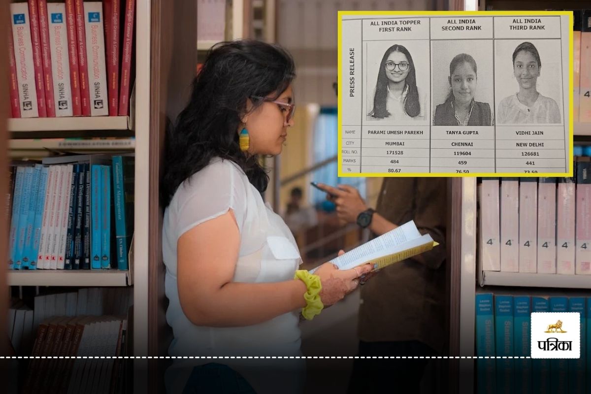 सीए इंटरमीडिएट परीक्षा में लड़कियों का बोलबाला रहा है। इस परीक्षा में मुंबई की परमी उमेश पारेख ने टॉप किया है। परमी ने 80.67 प्रतिशत अंक हासिल किया है। चेन्नई की तान्या गुप्ता ने 76.50 प्रतिशत लेकर दूसरा स्थान हासिल किया है। वहीं दिल्ली की विधि जैन ने 73.50 प्रतिशत अंक हासिल किया है और वो तीसरा रैंक हासिल करने में सफल रहीं हैं।