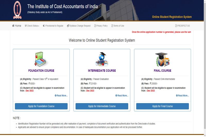 2. इसके बाद होमपेज पर ICMAI CMA जून रजिस्ट्रेशन के लिंक पर क्लिक करें।