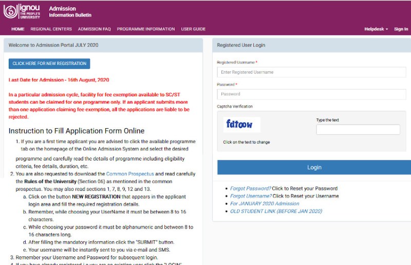 IGNOU July Admission 2020: इंदिरा गांधी राष्ट्रिय खुला विश्विद्यालय ने जुलाई- 2020 सत्र के लिए प्रवेश के लिए आवेदन और पुनः पंजीकरण की तिथि को आगे बढ़ा दिया है। अब उम्मीदवार 16 अगस्त 2020 तक आवेदन कर सकते हैं। जिन विद्यार्थियों ने अभी तक आवेदन नहीं किया है, वे इग्नू की आधिकारिक वेबसाइट ignou.ac.in पर जाकर आवेदन कर सकते हैं। स्टूडेंट्स ध्यान दें कि स्नातक और स्नातकोत्तर में विभिन्न विषयों के लिए आवेदन कर सकते हैं। इन प्रोगाम में एमए, इंग्लिश, बीए इन हिंदी, पीजीडी इन रूरल डेवलपमेंट, पीजी सार्टिफिकेट इन एडल्ट एजुकेशन सहित अन्य प्रोगाम के लिए आवेदन कर सकते हैं।