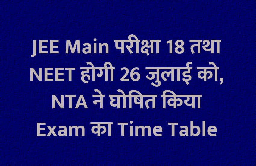 नेशनल टेस्टिंग एजेंसी (NTA) ने देश की सबसे बड़ी मेडिकल प्रवेश परीक्षा राष्ट्रीय पात्रता सह प्रवेश परीक्षा (NEET UG) और सबसे बड़ी इंजीनियरिंग प्रवेश परीक्षा JEE Main का कार्यक्रम घोषित कर दिया है। दोनों परीक्षाओं में 26 लाख से अधिक विद्यार्थी शामिल होंगे। परीक्षाओं के 15 दिन पहले प्रवेश पत्र जारी होंगे। JEE Main परीक्षा 18 से 23 जुलाई के बीच दो शिफ्टों में सुबह 9 बजे से दोपहर 12 बजे तथा दोपहर 3 से शाम 6 बजे तक होगी। परीक्षार्थी 31 मई तक परीक्षा केन्द्र में बदलाव व त्रुटियों में सुधार करवा सकेंगे।