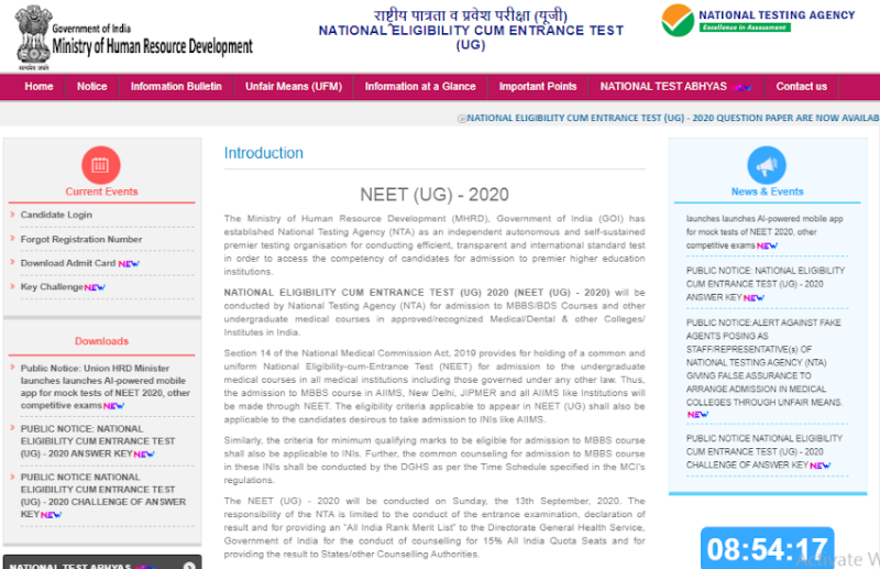 NEET 2020 परिणाम की घोषणा