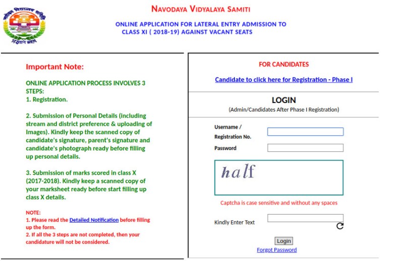 Navodaya vidyalaya Admission 2018 : नवोदय विद्यालय में सत्र 2018-19 में प्रवेश लेने के इच्छुक विद्यार्थी समिति की आधिकारिक वेबसाइट से आवेदन कर सकते हैं। समिति ने आवेदन पश्चात रिक्त रही सीटों पर लेटरल एंट्री के जरिए प्रवेश हेतु इच्छुक विद्यार्थियों से nvshq.org पर आवेदन मांगे है। नवोदय विद्यालय एडमिशन 2018-19 के लिए 11 वीं कक्षा में रिक्त रही सीटों को भरने के लिए जिलों के जवाहर नवोदय विद्यालय में आवेदन किया जा सकता है। आवेदन ऑनलाइन माध्यम से किया जायेगा। आवेदन करने से पूर्व अभिभावक आधिकारिक अधिसूचना जरूर पढ़ लेवें। प्रवेश सीबीएसई / राज्य या अन्य मान्यता प्राप्त शैक्षिक बोर्डों द्वारा आयोजित कक्षा 10 बोर्ड परीक्षा में छात्रों के द्वारा प्राप्त अंकों के आधार पर किया जाएगा।