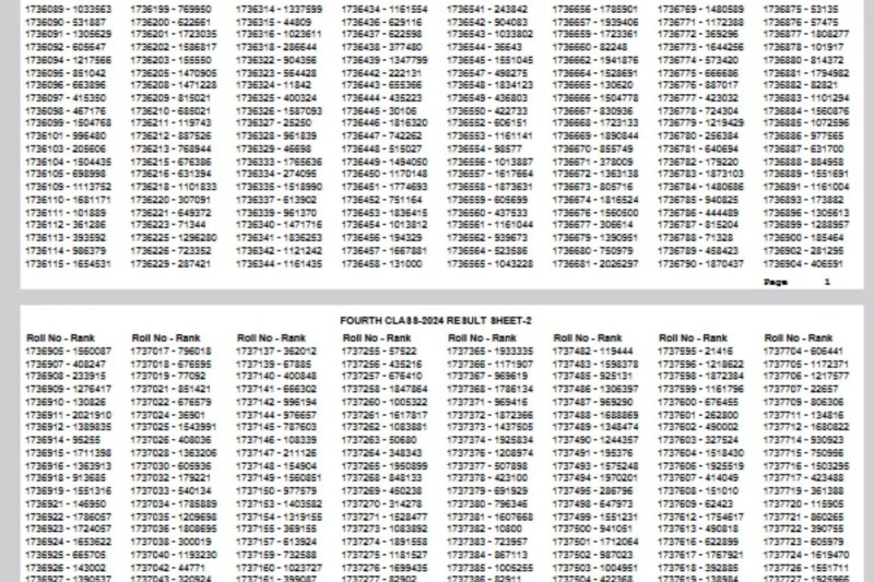 रिजल्ट शीट 1 रोल नंबर 1110101 से 1736000 Pdf