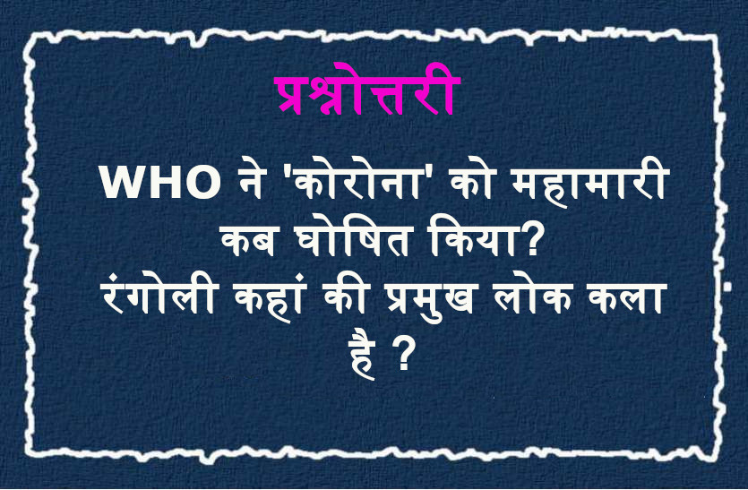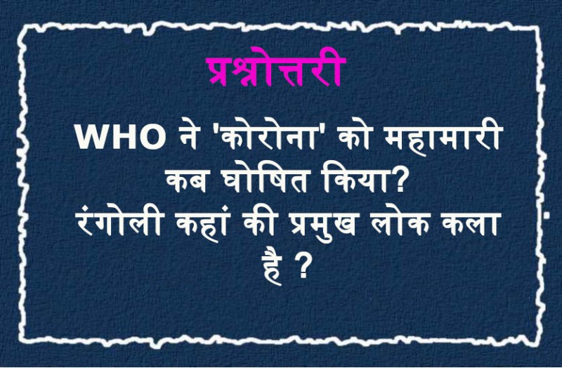 प्रश्न : WHO ने 'कोरोना' को महामारी कब घोषित किया?