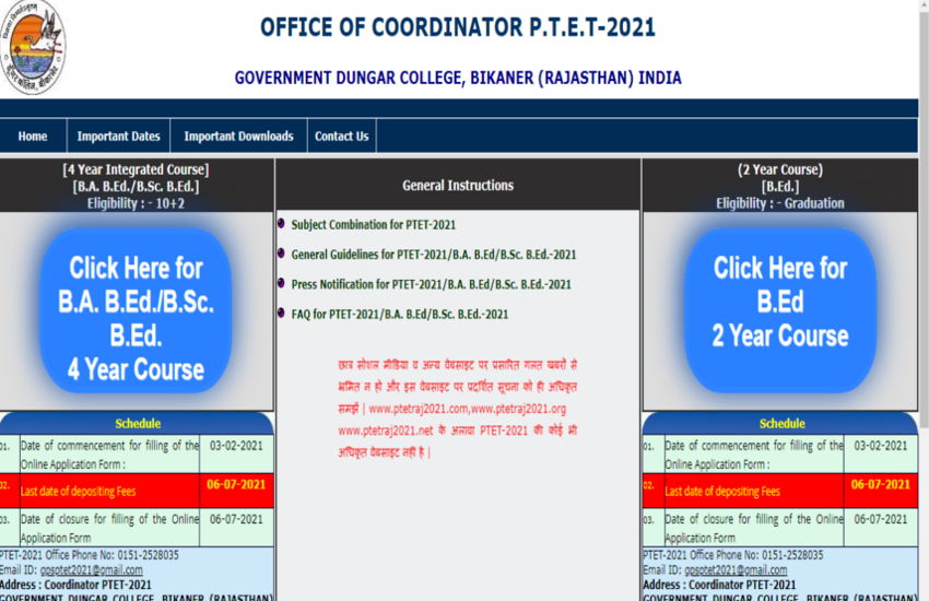 Rajasthan PTET 2021
