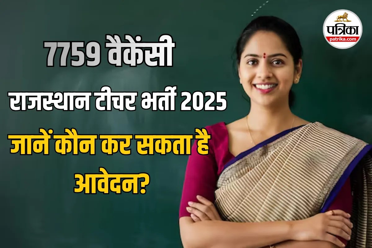 राजस्थान में इस बार शिक्षकों की भर्ती का पैमाना बड़ा है। कुल 7759 पदों पर नियुक्ति की जाएगी। इसमें प्राइमरी स्कूल टीचर (संस्कृत और जनरल विभाग) और अपर प्राइमरी टीचर (हिंदी, अंग्रेजी, संस्कृत, गणित, विज्ञान और सामाजिक अध्ययन) के पद शामिल हैं।