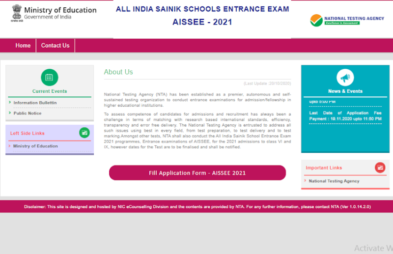 - सबसे पहले आधिकारिक वेबसाइट aissee.nta.nic.in पर जाएं।