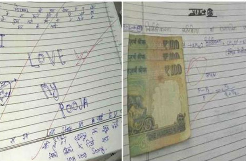 कुछ स्टूडेंट ने तो अपनी उत्तर पुस्तिका में प्रश्न का उत्तर न आने पर टीचर के लिए पैसे रखकर पास करने की गुहार लगाई। कई उत्तर पुस्तिकाओं में 100—100 रुपए के नोट देखने को मिले है। छात्रों ने अपनी आंसर सीट में 100 रुपए का नोट रखकर पास करने की प्रार्थना की। इतना ही नहीं एक छात्र ने सारी हदों कों पार करते हुए अपनी उत्तर पुस्तिका में अपनी दर्द भरी प्रेम कहानी लिख डाली।