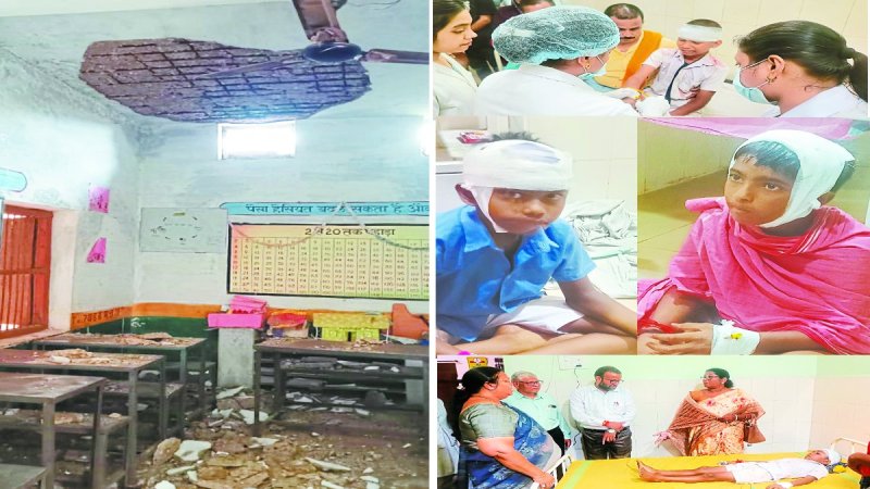 Plaster fell in Korguda school डौंडीलोहारा विकासखंड के ग्राम कोरगुड़ा में संचालित प्राथमिक शाला में छत का प्लास्टर गिरने से चार बच्चे के घायल हो गए। मामले में जिला शिक्षा अधिकारी पीसी मरकले ने प्रधान पाठक तुलसी देवी गोयल व संकुल समन्वयक दुधली व सहायक शिक्षक यशवंत निर्मलकर को तत्काल प्रभाव से निलंबित कर दिया है।