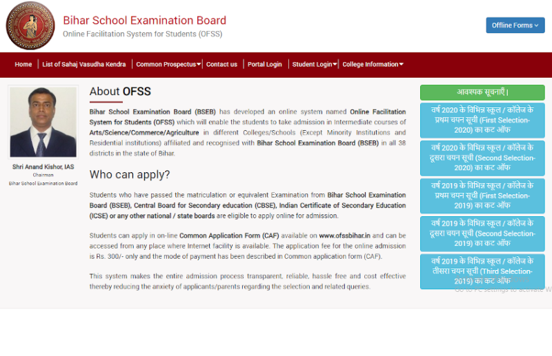 OFSS Bihar Intermediate Admission 2020: बिहार विद्यालय परीक्षा समिति कल 4 सितंबर 2020, को सुबह 11 बजे कक्षा 12वीं में प्रवेश के लिए तीसरी वरीयता सूची जारी करेगा। ओएफएसएस बिहार थर्ड मेरिट लिस्ट आधिकारिक वेबसाइट ofssbihar.in पर जारी की जाएगी। जिन विद्यार्थियों ने बिहार इंटर एडमिशन के लिए आवेदन किया है, वह बिहार बोर्ड बीएसईबी ओएफएसएस बिहार की मेरिट लिस्ट ofssbihar.in पर देख सकते हैं। वरीयता सूची डाउनलोड भी कर सकते हैं। इसके साथ ही विद्यार्थियों को 4 सितंबर से 8 सितंबर 2020 तक दिए गए संस्थान में एडमिशन करवाना होगा।