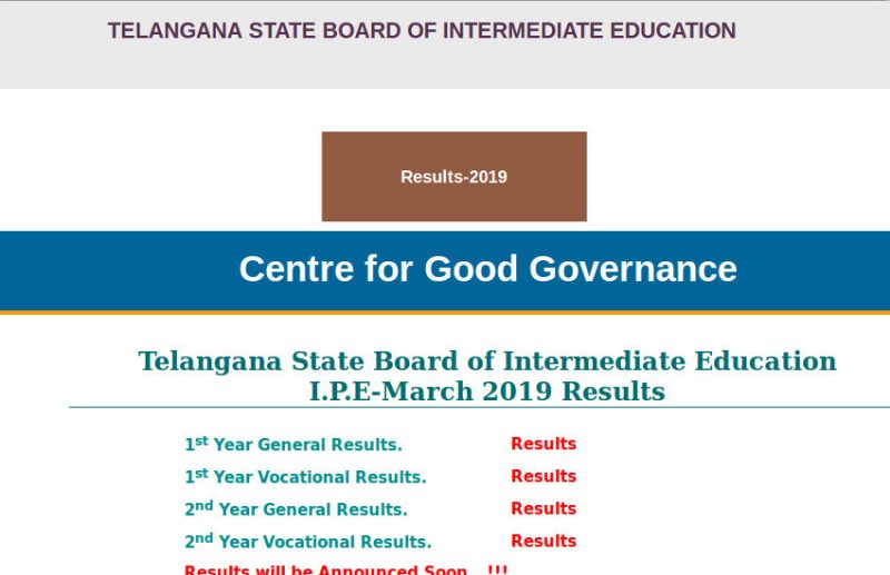 TS Intermediate 1st and 2nd year result 2019 डाउनलोड करने के लिए यहां क्लिक करें