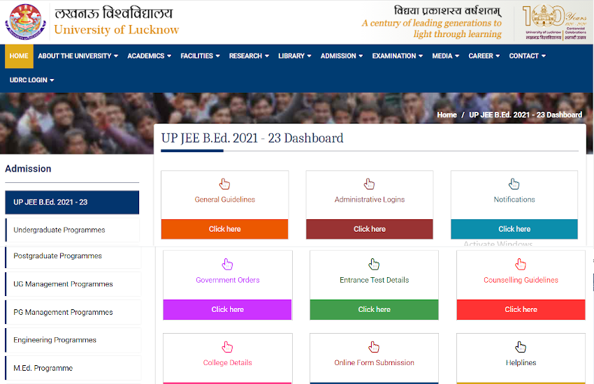 UP BEd JEE Notification 2021: लखनऊ विश्वविद्यालय ने बीएड कॉलेजों में प्रवेश के लिए आयोजित होने वाली यूपी बीएड जेईई 2021 का नोटिफिकेशन जारी कर दिया है। इच्छुक युवा लखनऊ विश्वविद्यालय की ऑफिशियल वेबसाइट, lkouniv.ac.in पर जाकर यूपी बीएड प्रवेश परीक्षा 2021 का नोटिफिकेशन देख सकते हैं। आवेदन करने से पहले सभी उम्मीदवार लखनऊ विश्वविद्यालय द्वारा जारी यूपी बीएड प्रवेश परीक्षा 2021 प्रॉस्पेक्टस को जरूर पढ़ लेवें। नोटिफिकेशन के मुताबिक़ ऑनलाइन आवेदन प्रक्रिया 18 फरवरी 2021 से शुरू होकर 15 मार्च 2021 तक चलेगी। कैंडिडेट्स अपने अपने ऑनलाइन आवेदन 15 मार्च तक अप्लाई कर सकेंगे।