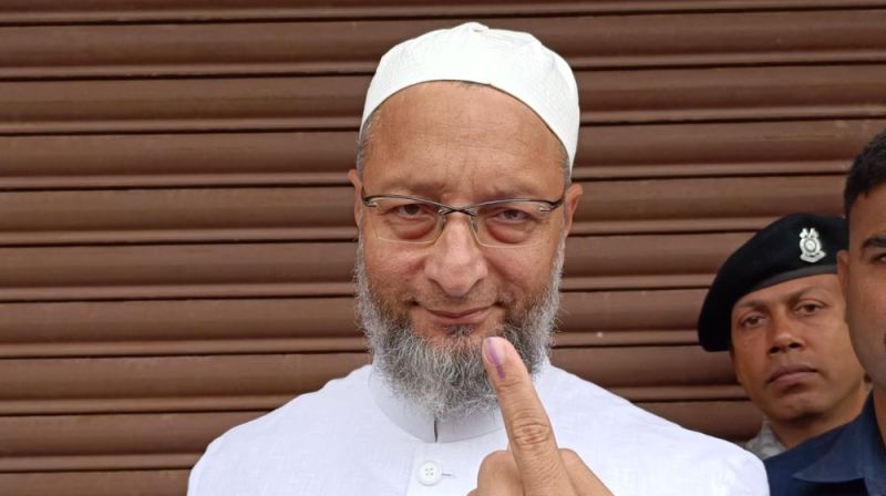असदुद्दीन ओवैसी ने हैदराबाद पोलिंग बूथ पर डाला वोट