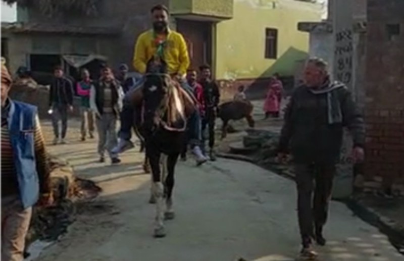 दरअसल, उत्तर प्रदेश विधानसभा चुनाव के तहत रामपुर की मिलक विधानसभा सीट पर 14 फरवरी को दूसरे चरण में मतदान किया जाएगा। समय कम होने और पाबंदियों के चलते सभी प्रत्याशियों ने ताबड़तोड़ प्रचार अभियान शुरू कर दिया है। सभी प्रत्याशी दिन-रात कड़ी मेहनत कर मतदाताओं को रिझाने के प्रयास में जुटे हुए हैं। इसी कड़ी में कांग्रेस प्रत्याशी एकलव्य वाल्मीकि का घोड़ी पर बैठकर चुनाव प्रचार करना चर्चा का विषय बना हुआ है। एकलव्य वाल्मीकि ने एक गांव में घोड़ी पर सवार होकर चुनाव प्रचार किया है और गांव की गलियों में घूम-घूम कर अपने पक्ष में वोट डालने की अपील की है। वाल्मीकि का कहना है कि विपक्षी दल तो बातें बनाते हैं, इससे उन्हें कोई फर्क नहीं पड़ता है। उनका मन किया तो वह घोड़ी पर सवार हो गए।