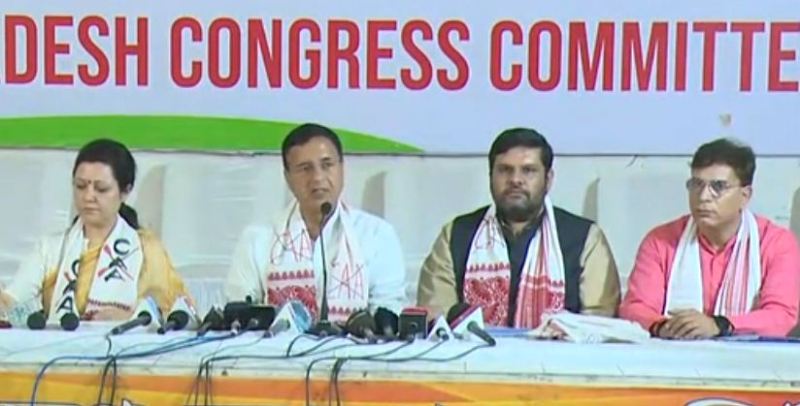कांग्रेस नेता रणदीप सिंह सुरजेवाला गोवाहटी में मीडिया से बातचीत करते हुए