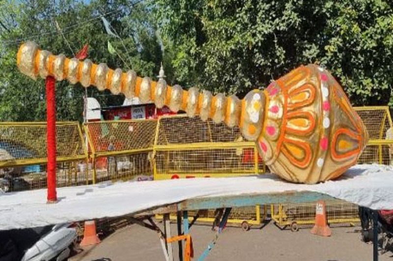जबलपुर के आदि शंकराचार्य चौक में बजरंग बली की 30 फीट ऊंची गदा सभी आकर्षण केंद्र