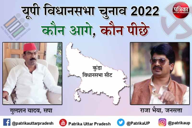 Kunda Assembly Elections Result 2022: उत्तर प्रदेश विधानसभा चुनाव के दौरान प्रतापगढ़ कुंडा विधानसभा सीट सबसे ज्यादा चर्चा में रही। रघुराज प्रताप सिंह राजा भैया की करीबी रहे गुलशन यादव को समाजवादी पार्टी ने उम्मीदवार बनाया है। 1993 से लगातार निर्दलीय विधायक बनते आ रहे रघुराज प्रताप सिंह पहली बार अपनी पार्टी जनसत्ता दल लोकतांत्रिक के टिकट पर चुनाव लड़ रहे हैं। क्षेत्र में मजबूत वर्चस्व रखने वाले रघुराज प्रताप सिंह के लिए इस बार की जीत आसान नहीं होगी। क्योंकि समाजवादी पार्टी ने गुलशन यादव को मैदान में उतारा है और गुलशन यादव लगातार रघुराज प्रताप के खिलाफ माहौल बना रहे हैं। शुरुआती रुझान में रघुराज प्रताप सिंह समाजवादी पार्टी गुलशन यादव से 500 वोटों से आगे चल रहे हैं।