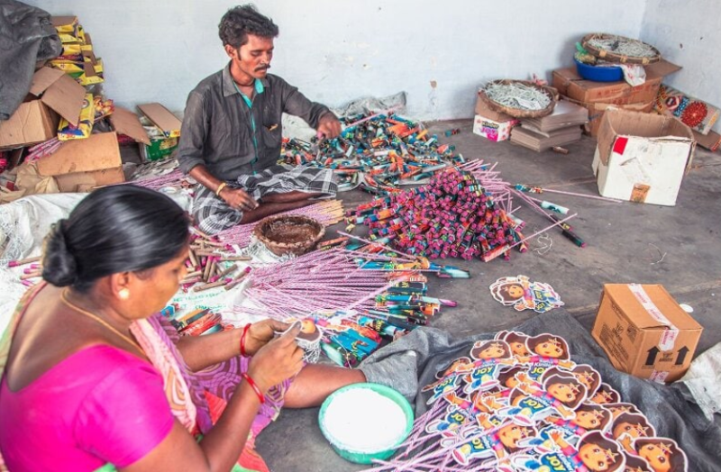 एक अनुमान के मुताबिक देश में खपत होने वाली आतिशबाजी में से 90 प्रतिशत का उत्पादन शिवकाशी में ही होता है। यह कारोबार सैकड़ों करोड़ का है। तभी तो पटाखा उद्योग से जुड़े पी सेंथल कहते हैं देश की एक दिन की दीवाली पर चार चांद लगाने के लिए यहां 364 दिन काम होता है। तब पटाखे लोगों तक पहुंचते हैं। उन्होंने बताया कि इस उद्योग से करीब आठ लाख लोग सीधे जुड़े हुए हैं। इनमें उत्तर भारत से आने वाले श्रमिक कारीगर भी शामिल हैं। इससे साफ है कि यहां के लिए यह सालभर के जलसे जैसा है। वे स्वीकार करते हैं कि प्रदूषण को लेकर उठे सवाल और कोरोना की वजह से दिक्कत पैदा हुई है। अधिकतर श्रमिक जा चुके हैं, छोटी फैक्ट्रियां बंद हैं और बड़े उद्योगों में नाम मात्र का उत्पादन हो रहा है।
