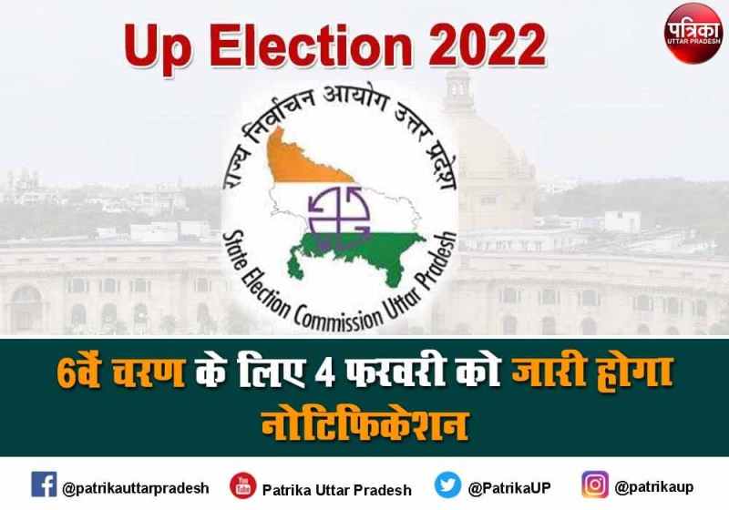 UP Assembly Elections 2022 : यूपी के मुख्य निर्वाचन अधिकारी अजय कुमार शुक्ला ने बताया कि उत्तर प्रदेश विधानसभा सामान्य निर्वाचन-2022 के लिए छठवें चरण के मतदान के लिए 4 फरवरी (शुक्रवार) को नोटिफिकेशन जारी किया जायेगा। उन्होंने बताया कि इसके साथ ही छठवें चरण के 10 जिलों में अम्बेडकरनगर, बलरामपुर, सिद्धार्थनगर, बस्ती, संतकबीर नगर, महाराजगंज, गोरखपुर, कुशीनगर, देवरिया एवं बलिया की 57 विधानसभा सीटों के लिये नामांकन पत्र दाखिल करने की प्रक्रिया प्रारम्भ हो जायेगी। छठें चरण की 57 विधान सभा सीटों में कुल 11 विधानसभा सीटें अनुसूचित जाति के लिए आरक्षित हैं।