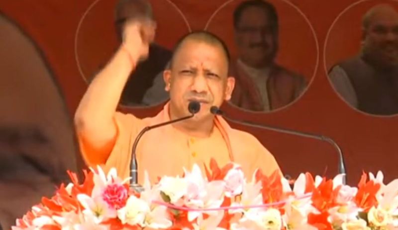 योगी आदित्यनाथ असम में चुनावी सभा को संबोधित करते हुए