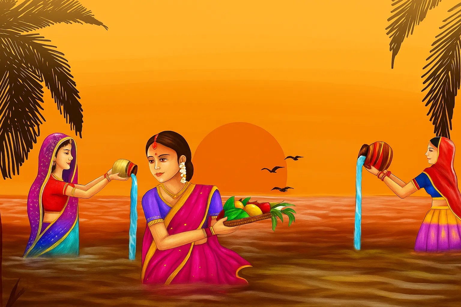 On this day, women observing the fast wake up early in the morning and first clean their homes. Following this, bathing in the Ganga, a river, or a pond is considered auspicious. If not possible, one can bathe at home by adding Ganga water to their bathing water. After bathing, new or clean clothes are worn, and the vow of Chhath Puja is taken. Subsequently, the Sun God is worshipped, and water is offered. Special attention is paid to the purity of food on this day. The fasting devotees consume a sattvic meal of chana dal (split chickpeas), kaddu ki sabzi (pumpkin curry), and rice. The use of garlic and onions is prohibited in the food.