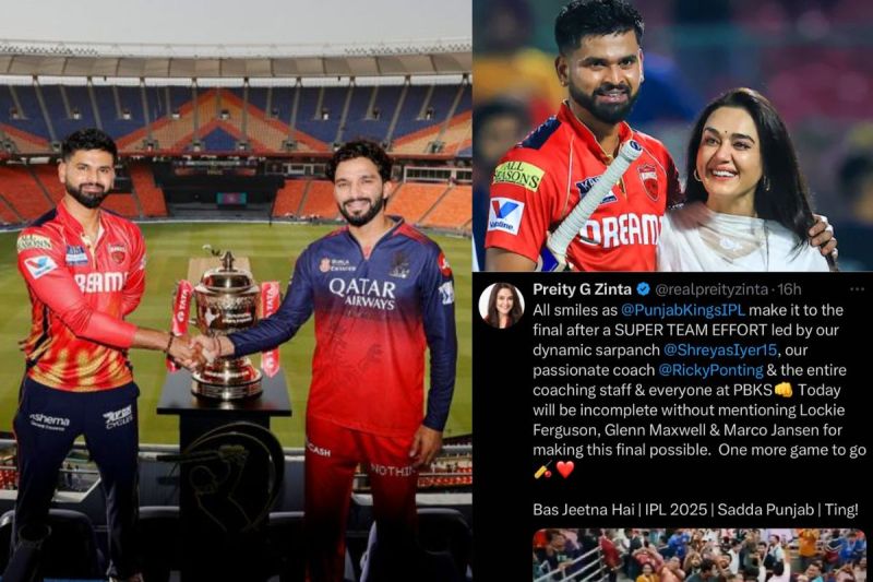 The final match of the 18th season of the Indian Premier League (IPL 2025) will be played today in Ahmedabad. This match will begin at 7:30 PM at the Narendra Modi Cricket Stadium. It is noteworthy that earlier, due to the ongoing tension between India and Pakistan, the 2025 IPL was cancelled, but as soon as the situation in the country improved, the IPL resumed. Preity Zinta is boosting her team's morale, which is why she made this special post.