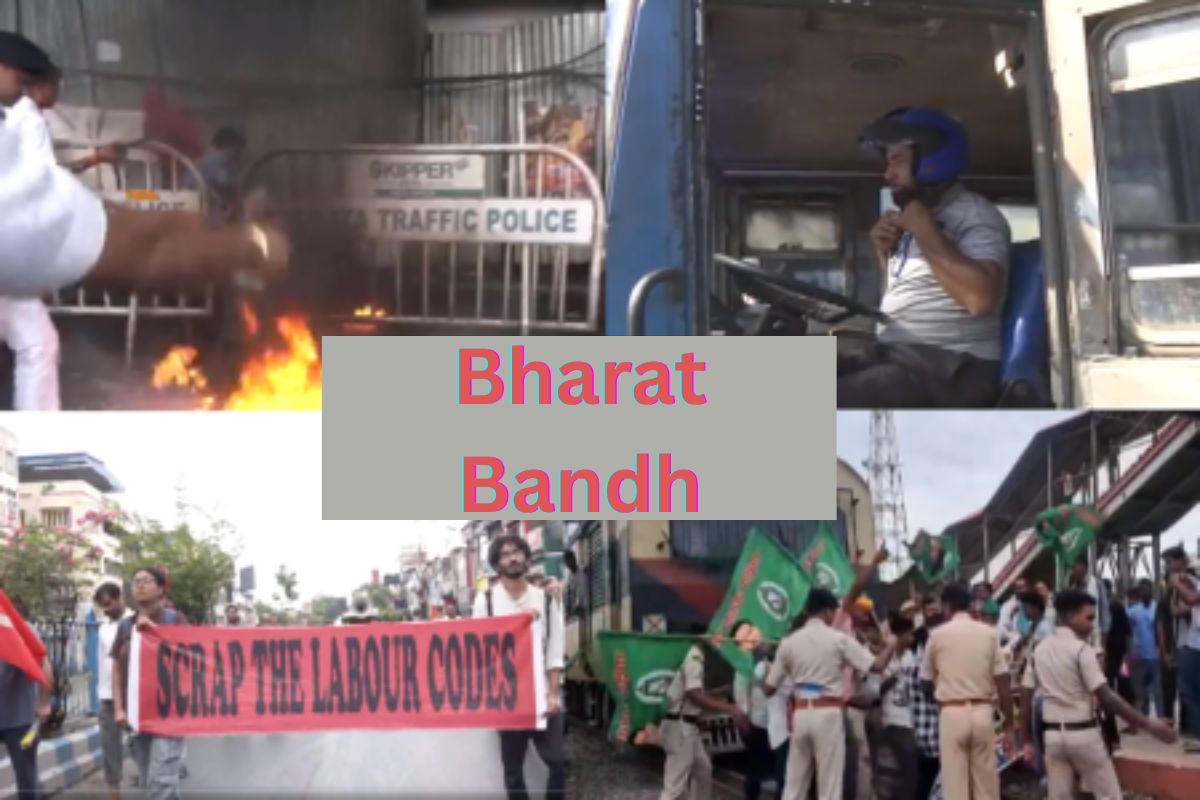 A heavy police presence was deployed near the Jadavpur 8B bus stand in Kolkata. Despite the Bharat Bandh, private and government buses continued to operate, with drivers wearing helmets for safety. The bandh, called by 10 central trade unions, alleges that the central government is pushing economic reforms that weaken workers' rights. The strike potentially affected government public transport, government offices, public sector units, banking and insurance services, postal operations, coal mining, and industrial production.