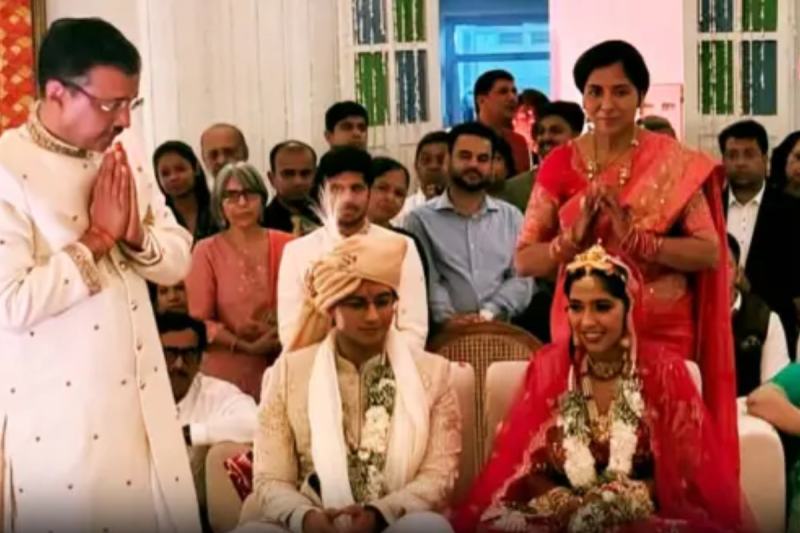 A joyous atmosphere filled the home of Arvind Kejriwal, former Chief Minister of Delhi and national convener of the Aam Aadmi Party. His daughter, Harshita Kejriwal, married her college friend and IIT Delhi batchmate, Sambhav Jain, on 18 April at the historic Kapurthala House in Delhi. The wedding was a simple affair, conducted with traditional rituals and attended only by family members and close guests.