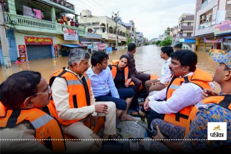 Two states of the country, Andhra Pradesh and Telangana, are experiencing heavy rainfall from the sky. On Tuesday, rain occurred in many places in both states. Due to heavy rain, rivers and streams are overflowing, and residential areas are flooded, affecting daily life. Water has also accumulated in low-lying areas. The army and NDRF, along with other agencies, are engaged in rescue and relief operations and are shifting affected people to safer places. Andhra Pradesh's CM Chandrababu Naidu visited the Vijayawada area. On Tuesday, 323 trains were canceled, and the routes of 170 trains were changed.