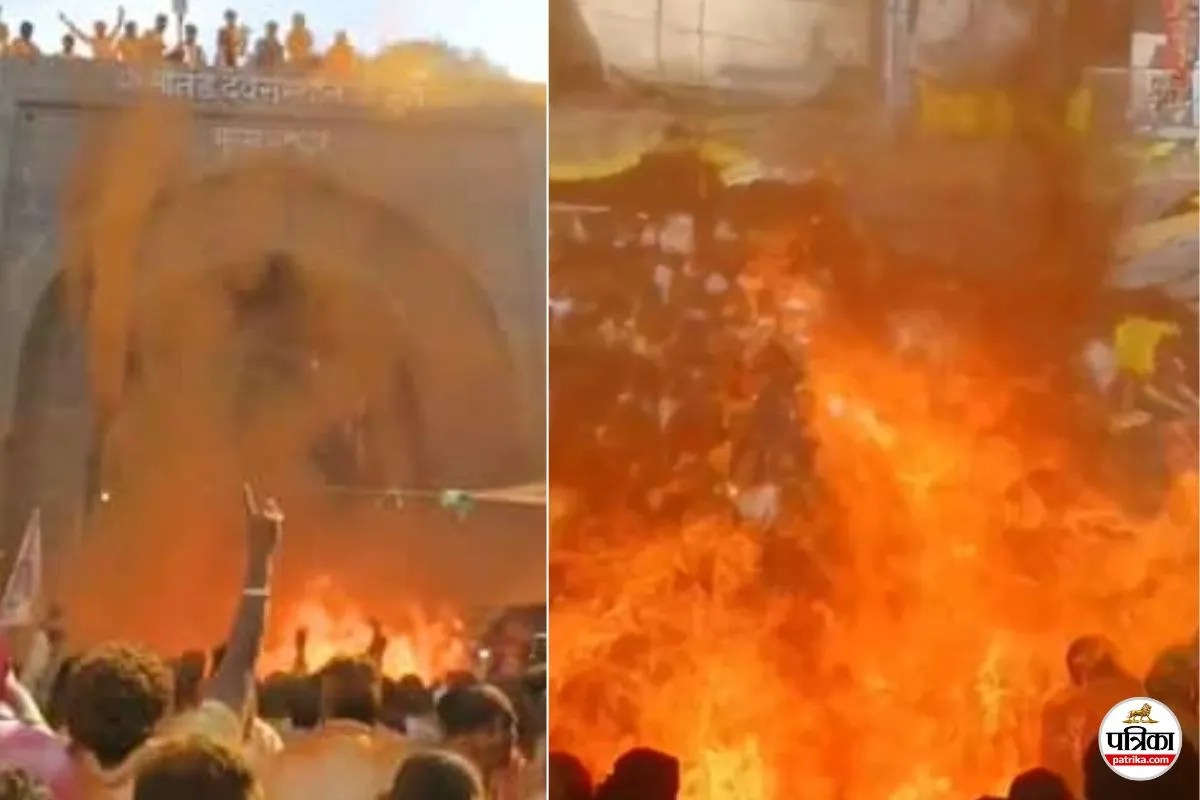 According to information, after the counting was completed at Malhar Natyagruh, the victorious candidates and supporters of the NCP Ajit Pawar faction had arrived at the temple to pay their respects to Lord Khandoba. As per tradition, devotees and workers were celebrating their victory by throwing 'Bhandara' (turmeric powder). It was during this time that the Bhandara suddenly caught fire and exploded into a ball of flames.