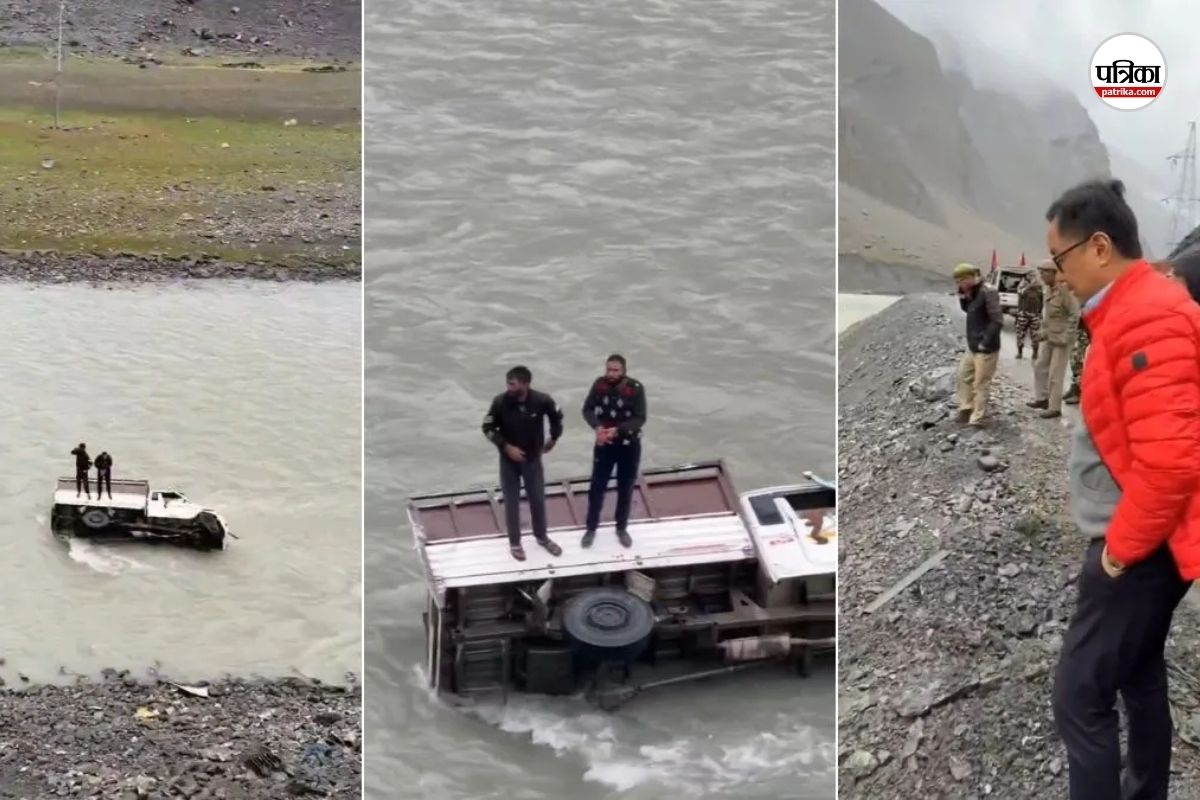 A major accident was narrowly averted in the Drass area of Ladakh when a pickup vehicle skidded off a mountain road and plunged into the Drass River. Two people inside the vehicle were trapped and calling for help. Fortunately, Union Minister of Parliamentary Affairs, Kiren Rijiju, was passing by with his convoy at that very moment. He immediately stopped his convoy, assessed the situation, and helped rescue the two trapped individuals.