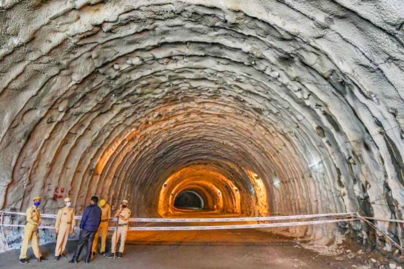 After this, it is moved forward. There is a mesh of reinforcement bars in the 2.5-meter gap between the 42 windows and the tunnel wall. After filling cement-concrete from one window, when the material starts coming out from the next window, it is closed. In this way, the tunnel is being reinforced. The base for the road inside the tunnel has been created.