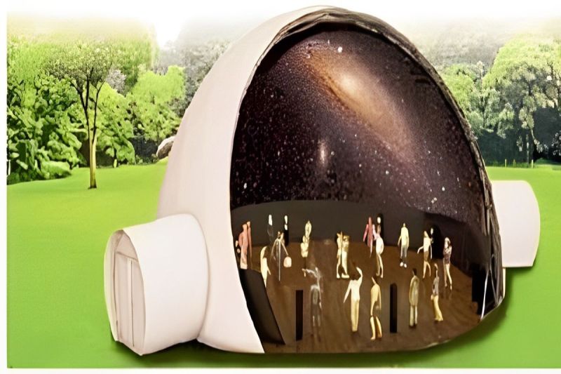 A planetarium displays stars and celestial objects that appear to be clustered together in a single area of the sky as viewed from the Earth's surface. This does not imply that they are physically close or share significant gravitational interaction.