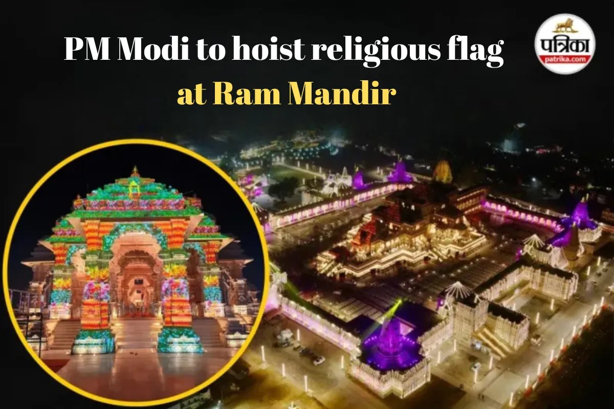 Ayodhya: Exactly 673 days after the consecration of Ram Lalla in Ayodhya, Prime Minister Narendra Modi will hoist the Dharma Dhwaja (religious flag) on the main spire of the Ram Mandir today. At 12:30 PM, during the Abhijit Muhurta, as the PM presses the button, a massive saffron flag weighing 2 kg will unfurl on the 161-foot-high spire. With this, the construction of the Ram Mandir will be considered completely finished. Approximately 7,000 people will be present at this historic event.