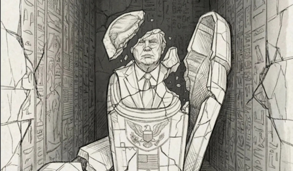 Donald Trump in broken coffin (Photo - Ali Khamenei's social media)