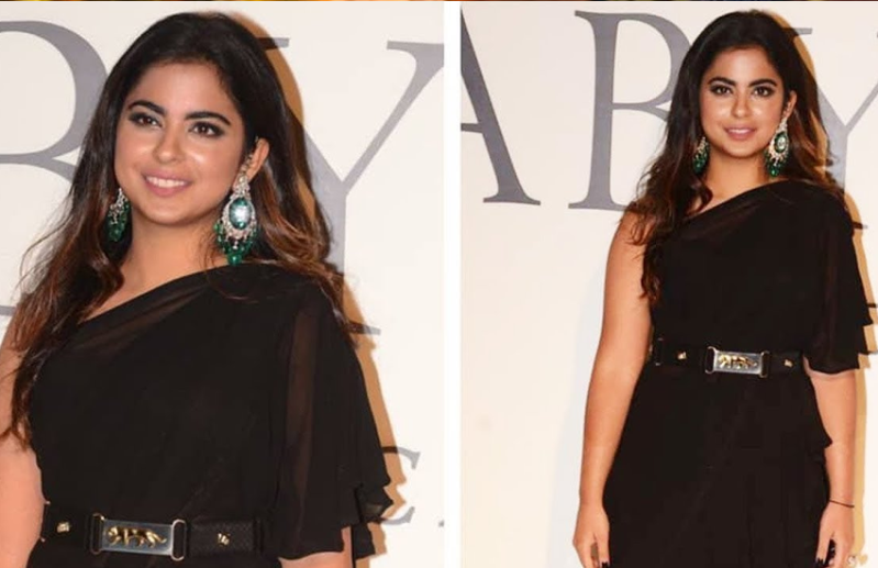 ईशा अंबानी इस इवेंट में सब्यसाची की डिजाइन की गई ब्लैक प्लेन साड़ी में पहुंची। उनका लुक काफी अट्रैक्टिव था जिसे देखकर लोगों की नजरें उनसे हटाए नहीं हट रही थी। इसके साथ ही ईशा लाइट मेकअप और न्यूज लिप शैड में गजब की खूबसूरत नजर आ रही थी। इसके अलावा ईशा ने कोई ज्वैलरी न कैरी करते हुए केलव खूबसूरत ईयररिंग्स कैरी किए हुए थे। साथ ही ईशा अंबानी ने अपने बालों को सॉफ्ट कर्ल दिया हुआ था, जिन्हें खुला छोड़ा गया था।