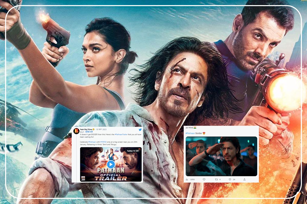 बता दें कि शाहरुख खान, दीपिका पादुकोण और जॉन अब्राहम के अलावा फिल्म में आशुतोष राणा और डिंपल कपाड़िया भी काफी अहम भूमिका में नजर आए हैं। वहीं धांसू ट्रेलर को देखकर लोग भी सोशल मीडिया पर अपने रिएक्शन्स दे रहे हैं। एक ओर जहां शाहरुख खान और दीपिका के फैंस फिल्म 'पठान' के ट्रेलर (Pathaan Trailer Twitter Reactions) को काफी पसंद कर रहे है, तो वही ट्रोल्स (Boycott Pathaan) ने इसमें कमी निकालनी भी शुरू कर दी है। कई लोग इस बात से खुश हैं कि शाहरुख खान लंबे समय के बाद फिल्मी पर्दे पर वापसी कर रहे हैं। साथ ही ट्रेलर में उनके एक्शन और एक्टिंग के कायल हो रहे हैं।