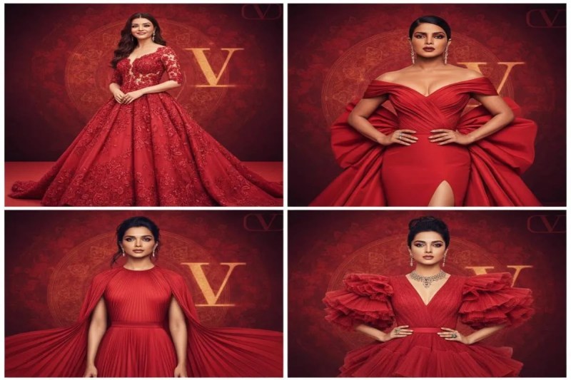 वैलेंटिनो गारवानी के डिजाइन किए लिबास में भारतीय अभिनेत्रियां। (फोटो: AI Gwenerated)
