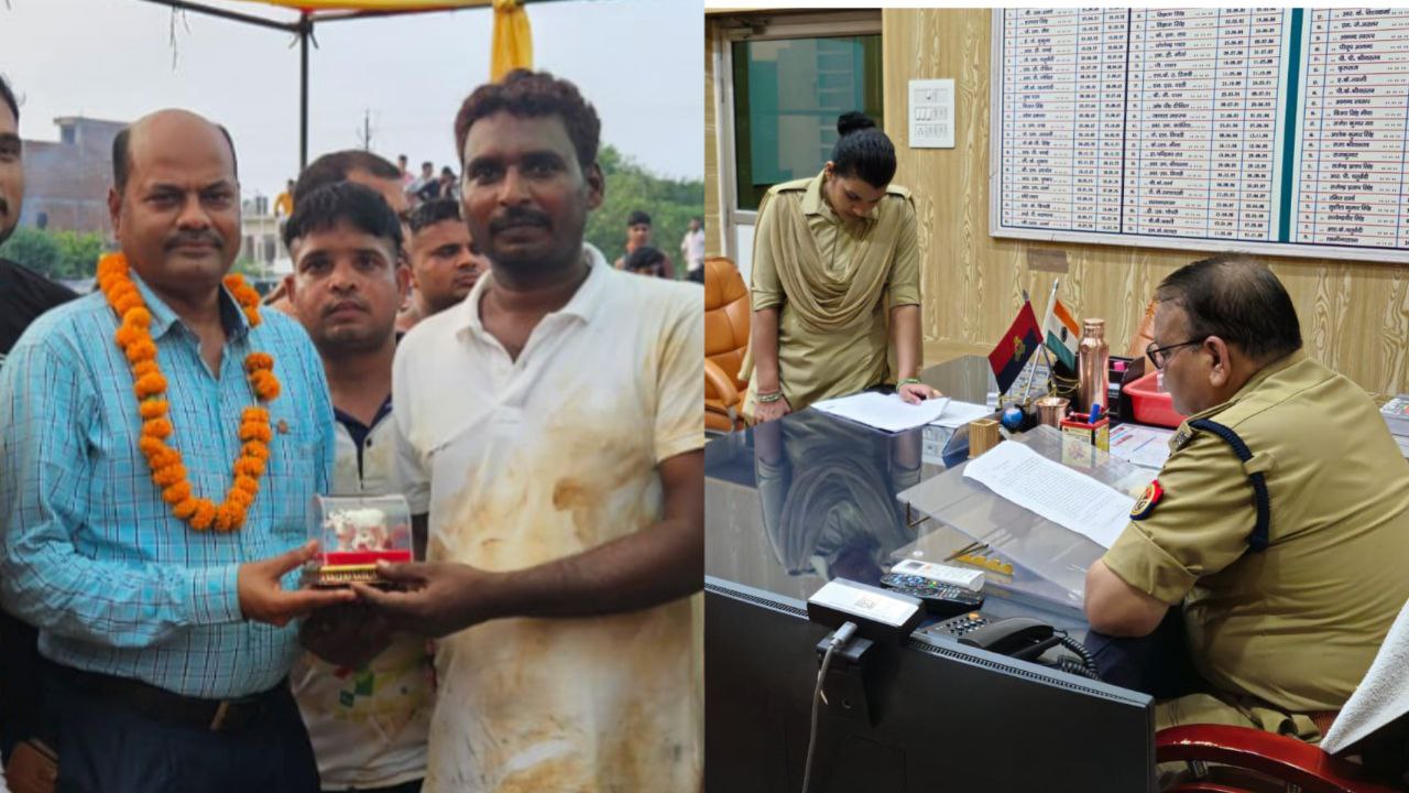Criminal honored SOG in-charge, SP punished एटा के एसओजी प्रभारी का एक फोटो 'एक्स' पर वायरल हो रहा है। जिसमें वह एक व्यक्ति से चांदी का गाय बछड़ा उपहार में ले रहे हैं। इसके खिलाफ लूट और छिनेती के कई मुकदमे दर्ज है। वायरल फोटो में एसओजी टीम के कई सिपाही भी मौजूद है। मामला वीर बजरंगबली धाकड़ दंगल का था। दंगल में कई जिलों के पहलवान अपने दांव आजमाने आए थे। इन्हीं के बीच एसओजी प्रभारी भी पहुंचे थे। वायरल फोटो को संज्ञान में लेते हुए एसपी ने एसओजी प्रभारी को लाइन हाजिर कर दिया। मामला जैथरा का है।