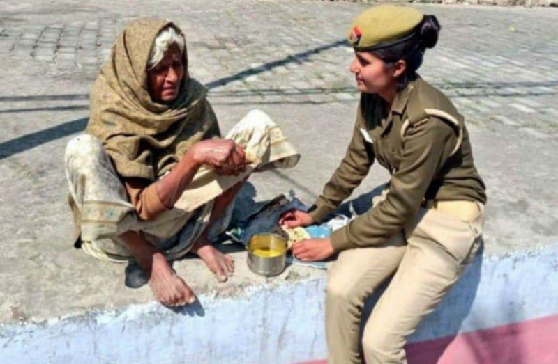 एटा। ना मां का रिश्ता और ना ही कोई आस पड़ोस की जान पहचान। लेकिन, तस्वीर ऐसी कि लगे मानो कोई बेटी अपनी मां को भोजन खिलाने के लिए आतुर हो और जब तक भोजन खत्म न हो तब टकटकी लगाकर उसे खाता हुआ देखकर खुद भी आत्मसंतुष्ट हो। ये तस्वीर बहुत कुछ बयां कर रही है और तेजी से वायरल हो रही है। ये तस्वीर सभी का दिल छू रही है। ये एटा पुलिस की महिला सिपाही की तस्वीर है जो एक बुर्जुग महिला को अपने टिफिन से खाना खिला रही है।